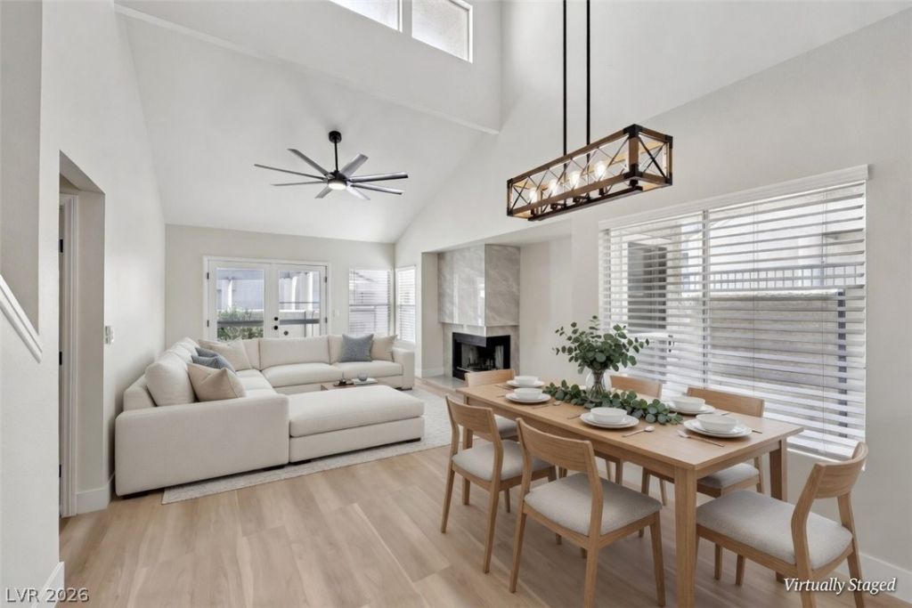 This stunning home has been completely remodeled top to bottom! Every detail was carefully upgraded with premium finishes throughout. Featuring brand new quartz countertops in the kitchen and bathrooms, stainless steel appliances, and a beautiful marble backsplash in the kitchen. Enjoy the custom tile fireplace, new Luxury Vinyl Plank flooring throughout, fresh interior paint, upgraded 5.5 baseboards, and modern light fixtures. The garage floors have been professionally epoxy coated for a clean, durable finish. Home has newer central HVAC plus an additional wall unit in the upstairs primary bedroom. Bright, modern, and turnkey ? this beautifully updated property offers style, comfort, and value in one of Las Vegas's desirable neighborhoods The Lakes at Summerlin. Perfect for families, first-time buyers, or investors seeking a turnkey property for buy and hold. Don't miss this rare opportunity on a fully renovated home. Schedule your showing today before it's gone.